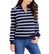 Opt for a crisp yet comfy look with this petite cotton pullover top from Charter Club| a versatile look styled with timeless stripes and a partial zip closure at the neckline.| Fitted; approx. 24 long| Designed to fit and flatter 5'4 and under frame| Mock neckline with partial zip closure| Ribbed cuffs and hem