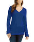 Charter Club Women's Cotton Textured V-Neck Sweater Blue Size Large
