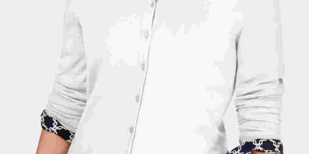 Charter Club Women's Crewneck Cardigan White Size Petite Small