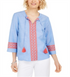Charter Club Women's Embroidered Tasseled Blouse Blue Size X-Large