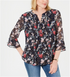 Charter Club Women's Floral Pintuck Top Blue Size X-Large