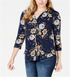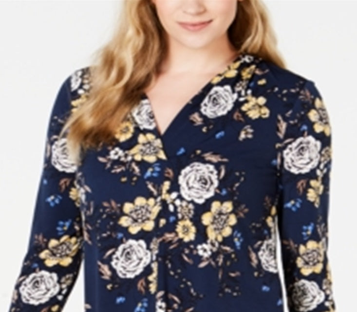 Charter Club Women's Floral Print V Neck Top Blue Size Large