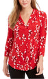 Charter Club Women's Floral Print V Neck Top Red Size Petite Small
