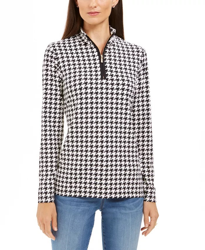 Fitted; approx. 26" long|Due to generous sizing, we suggest sizing down for the perfect fit|Mock-neck; zip-front closure|Nylon/spandex|Machine washable