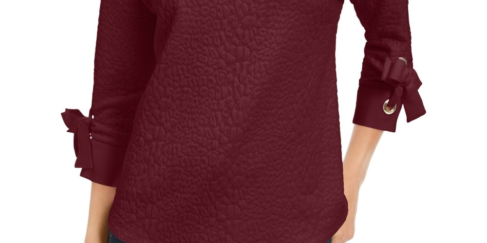 Charter Club Women's Jacquard Bow Cuff Top Wine Size PL