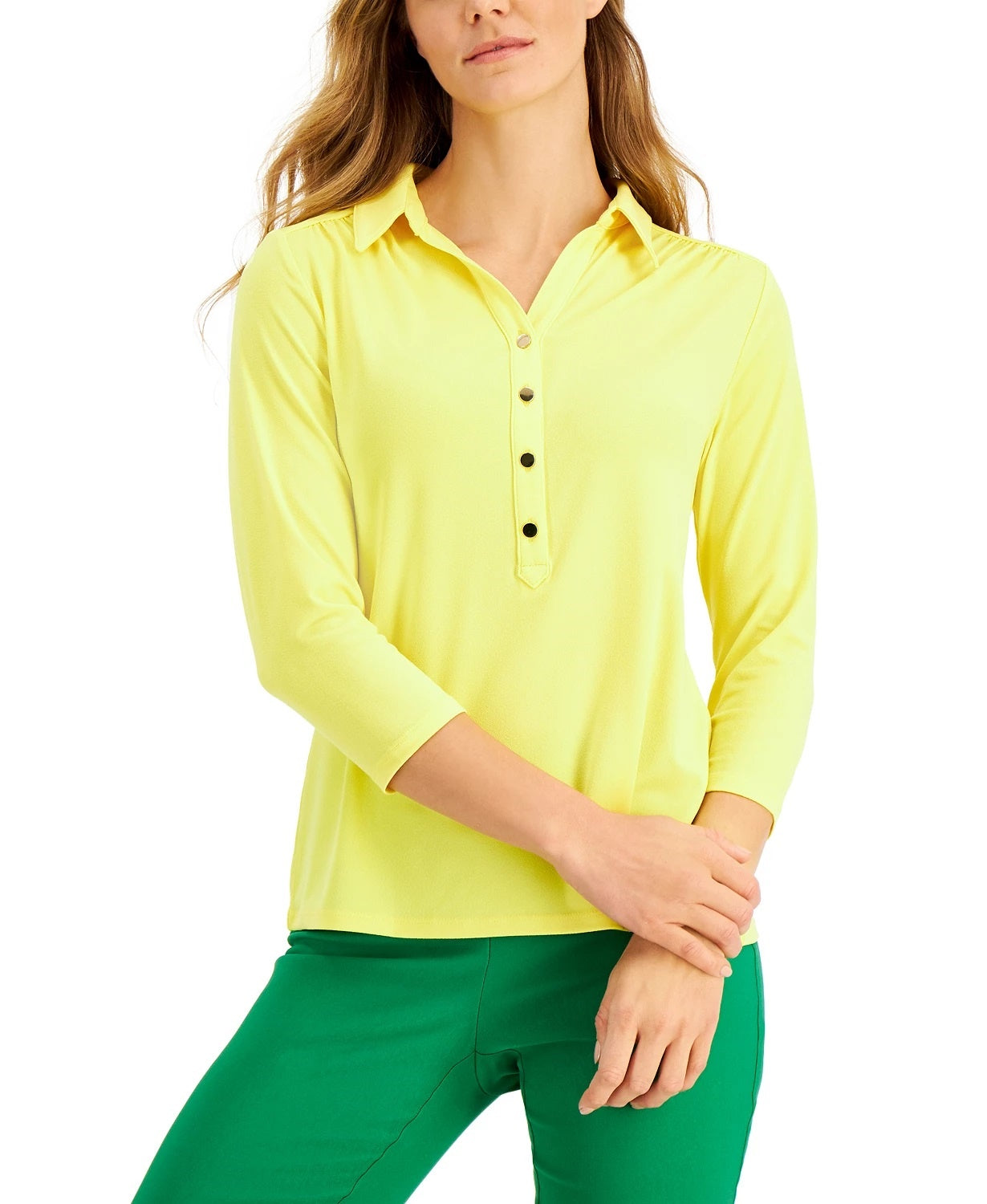 Charter Club Women's Knit Polo Shirt Gold Size Large