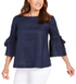 Charter Club Women's Linen Lantern Sleeve Top Blue Size Petite S