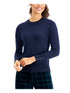 Charter Club Women's Merino Wool Button Cuff Crewneck Sweater Blue Size X-Small
