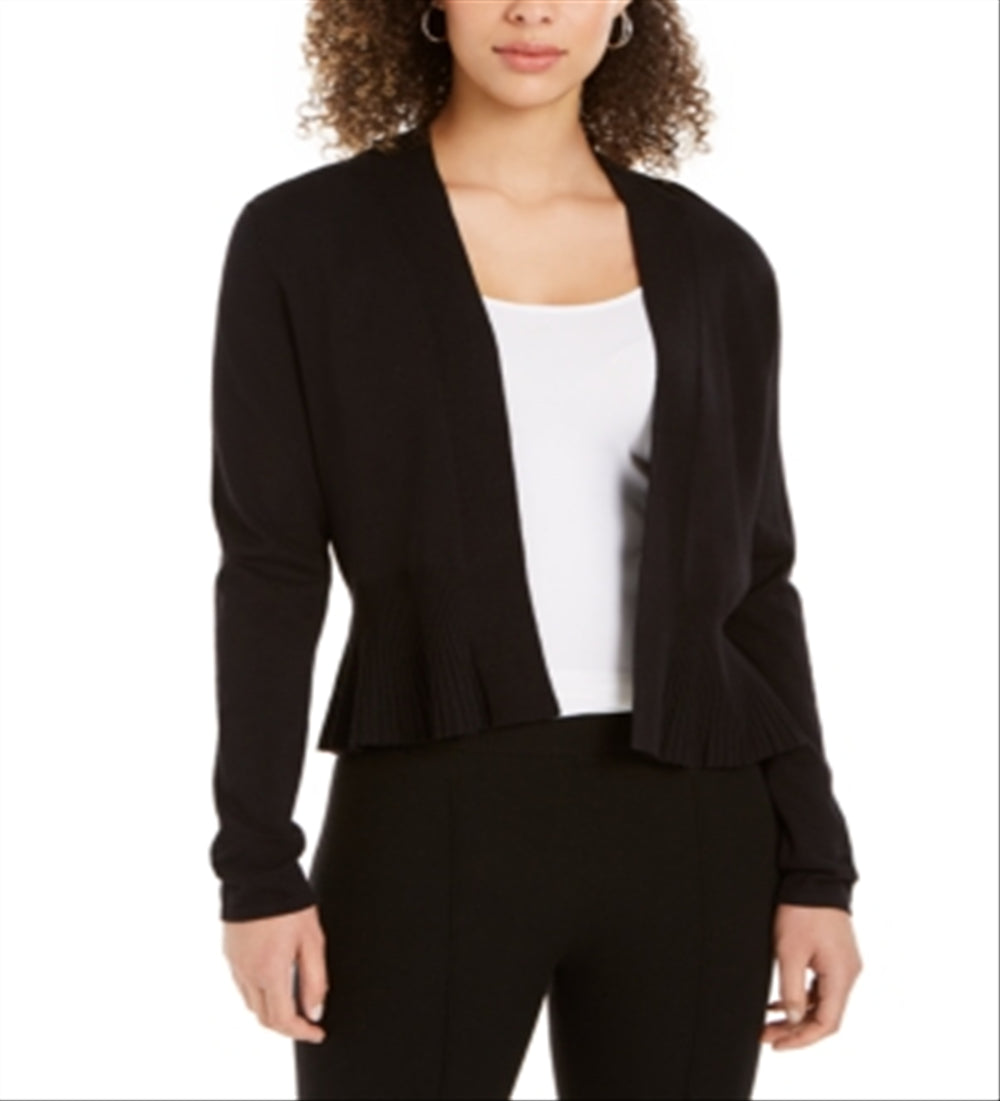 Charter Club Women's Open Front Peplum Cardigan Black Size Small