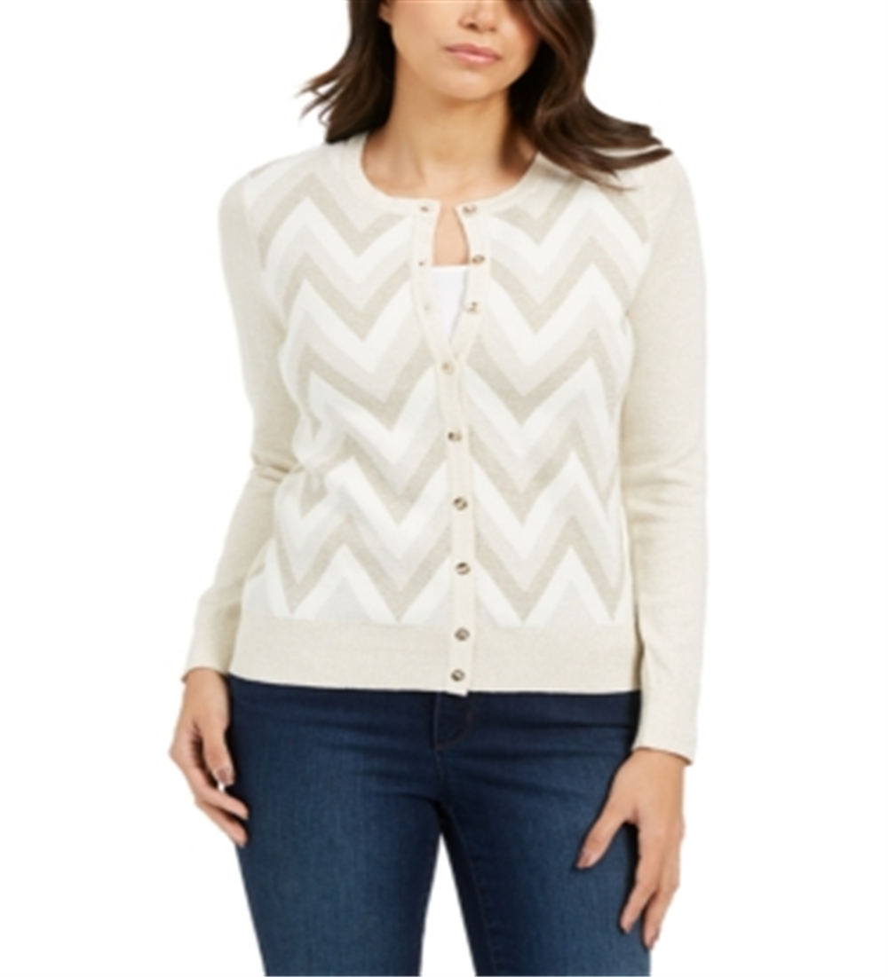 Charter Club Women's Petite Chevron-Print Metallic-Threaded Cardigan Cloud Combo White Size Petite S