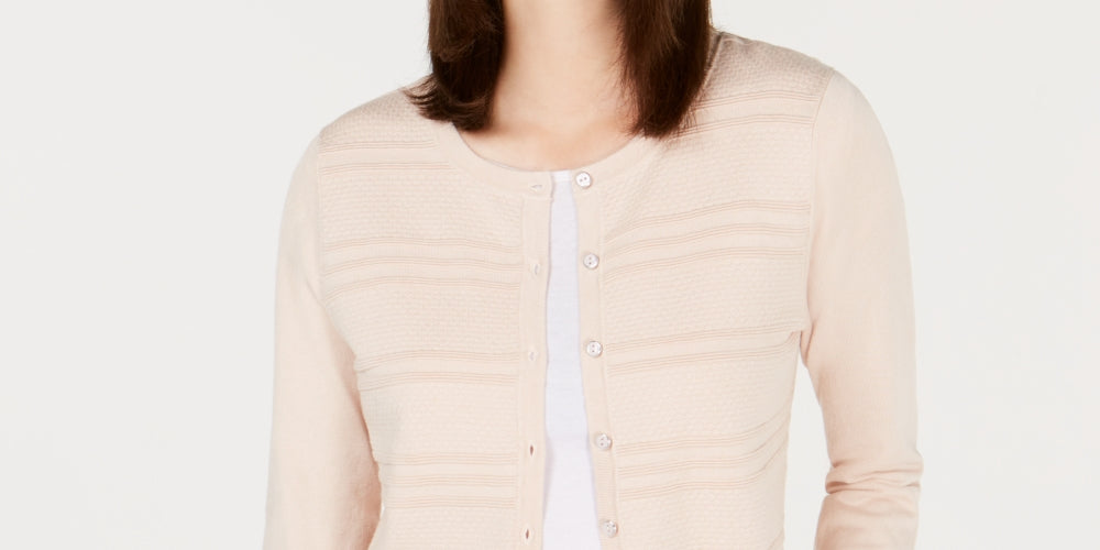 Charter Club Women's Petite Textured Cardigan Sweater -Pink Size Petite Small