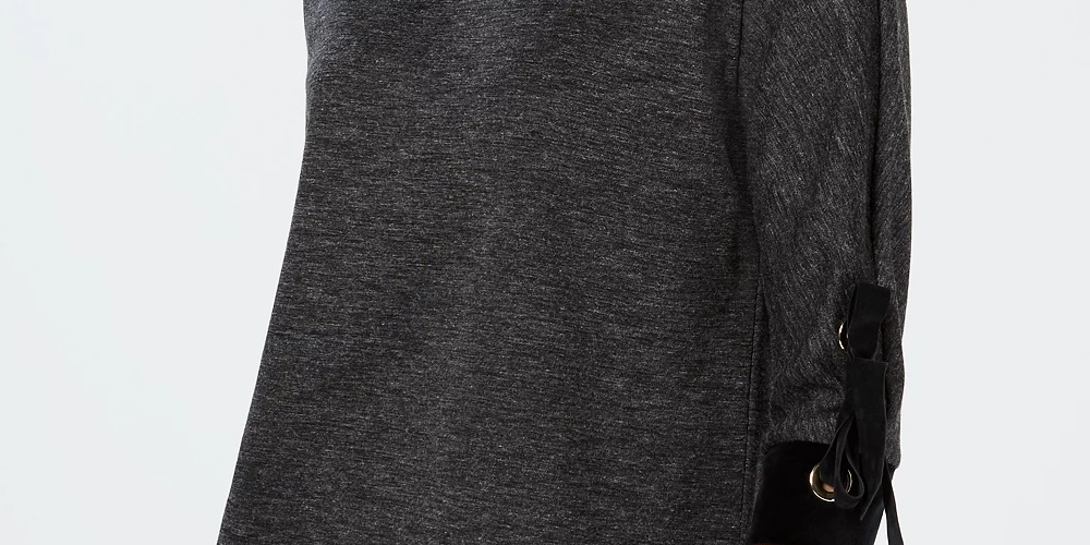 Relaxed fit; approx. 22-1/2" long|Designed to fit and flatter 5'4" and under frame|Round neckline|3/4-sleeves with tie details|Polyester/rayon|Machine washable