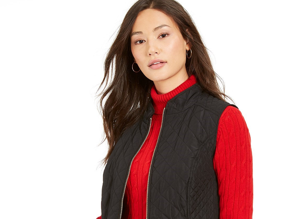 Charter Club Women's Petite Zip-Front Quilted Cotton Vest Black Size Petite