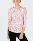 Charter Club Women's Pima Cotton Button Shoulder Printed Top Pink Size Petite Medium
