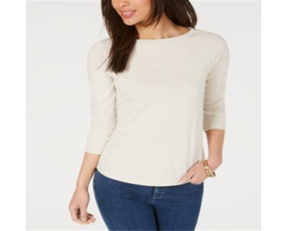 Charter Club Women's Pima Cotton Button Shoulder Top Oat Size Petite S/M