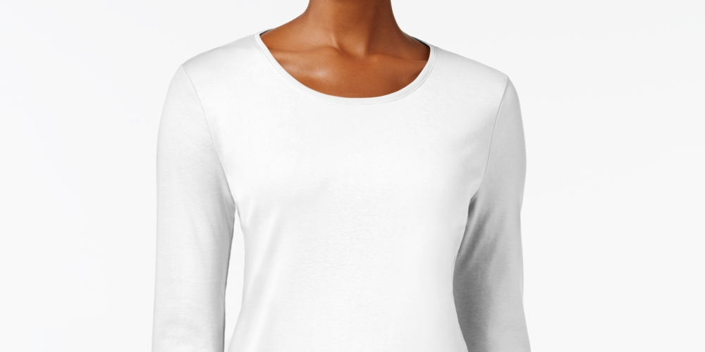 Charter Club Women's Pima Cotton Long-Sleeve Top White Size X-Large