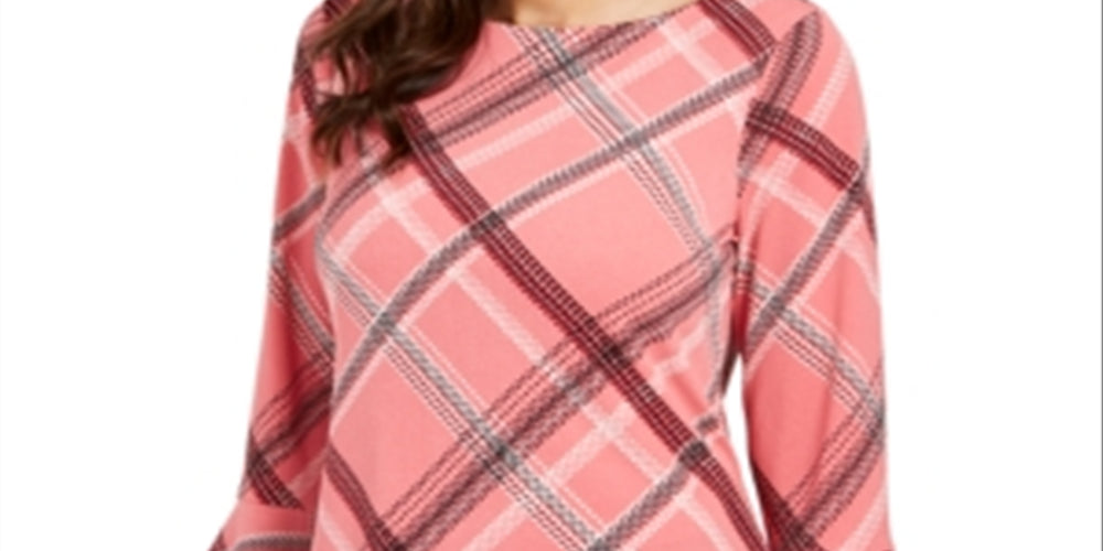 Charter Club gives you sophisticated flounce and flair for the weekday with this 3/4-sleeve top with bell-cuffs and a plaid motif. | Hits at hip; approx. 26 long| Due to generous sizing| we suggest sizing down for the perfect fit| Scoop-neck| Bell 3/4-sleeves