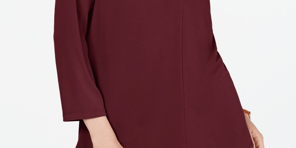Charter Club Women's Pleat Neck 3/4 Sleeve Top Wine Size Petite Medium