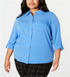 Charter Club Women's Plus Button Front Shirt Blue Size 2X