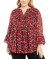 Charter Club Women's Plus Floral Print Pleated Blouse Red Size 0X