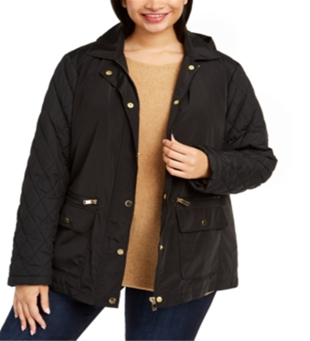 Charter Club Women's Plus Quilted Hooded Jacket Black Size 2X