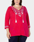 Relaxed fit; hits below hip; approx. 31 long|Scoop neckline with keyhole and tassel tie|Embroidered at neckline and cuffs|3/4-sleeves