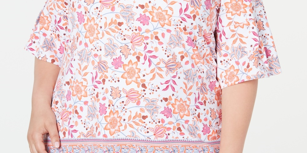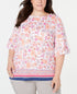 Charter Club Women's Plus Size Printed Bell Sleeve Top White Size 0X