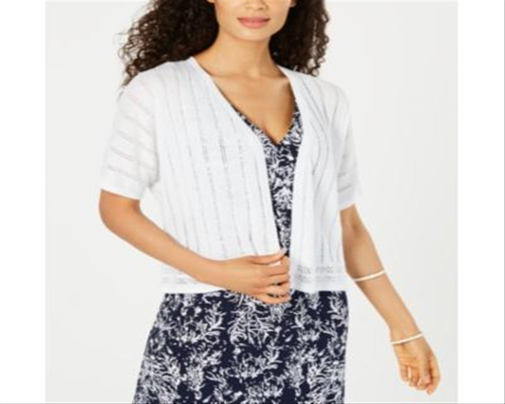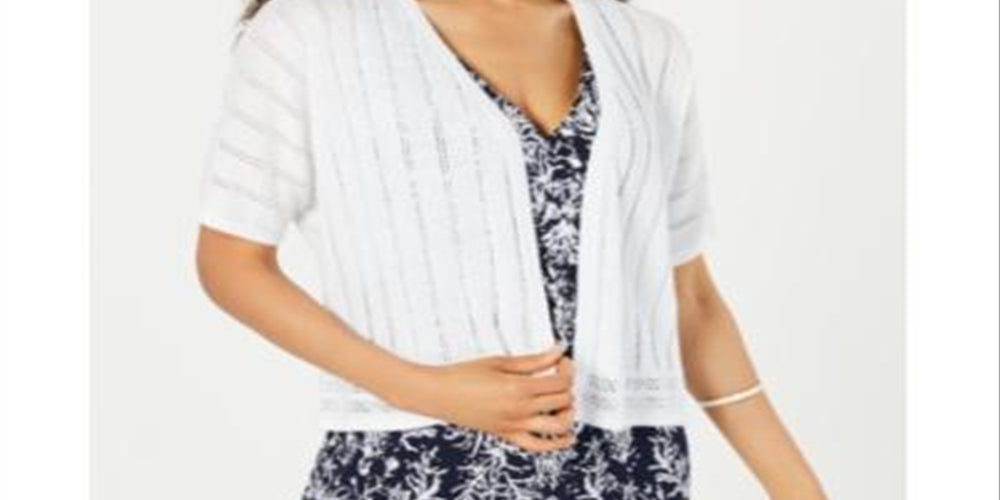 Elegant Pointelle Stripes | Open-Front | 3/4 Sleeve