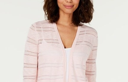 Charter Club Women's Pointelle Striped Cardigan Pink Size X-Large