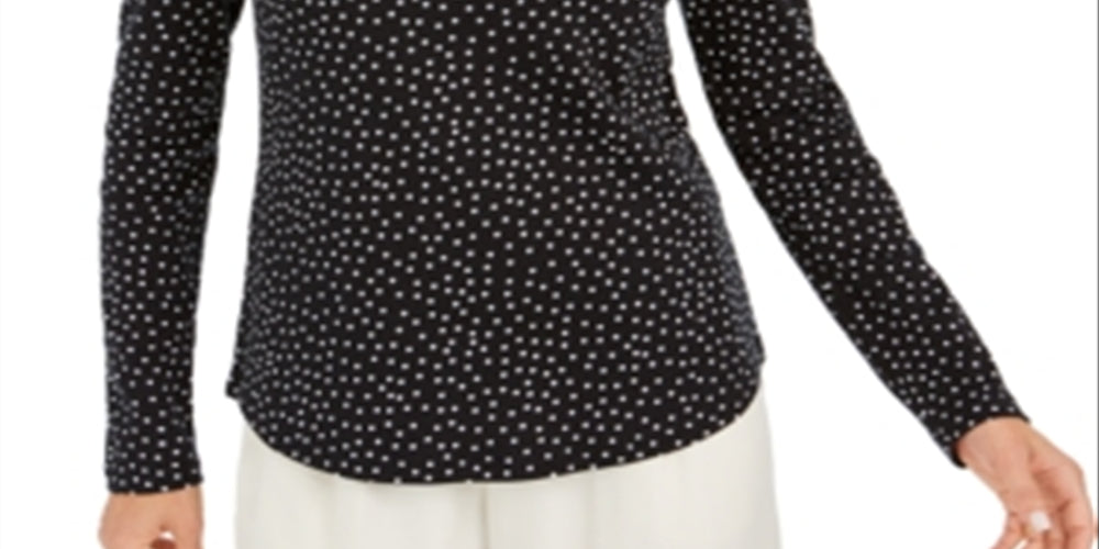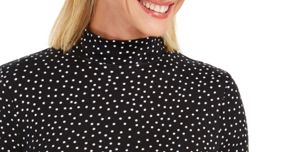 Charter Club Women's Polka Dot Long Sleeve Turtle Neck T-Shirt Top Black Size Large