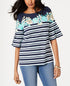 Charter Club Women's Printed Bell Sleeve Jewel Neck Top Blue Size Small