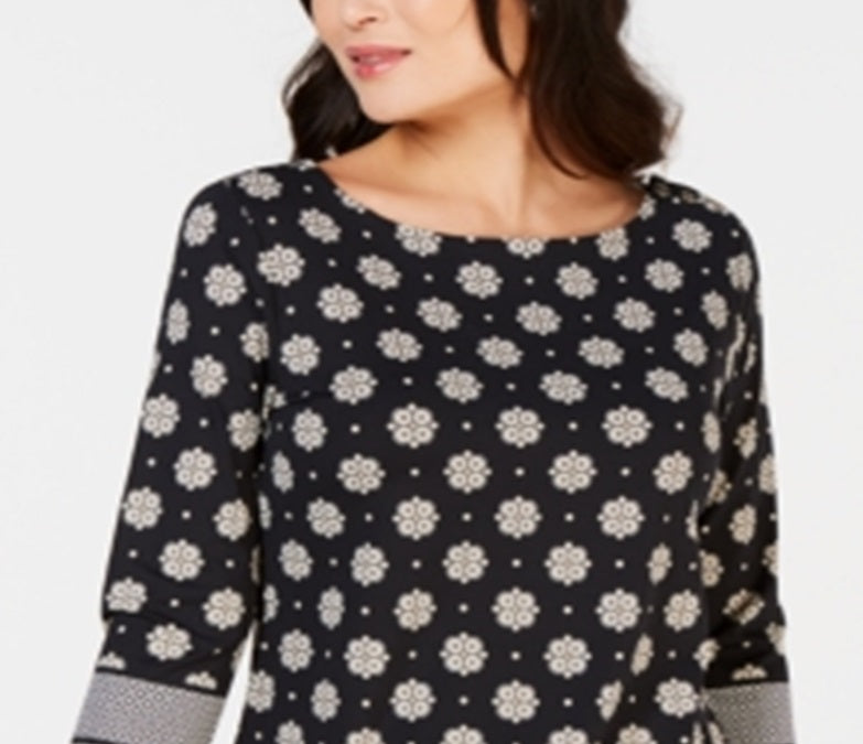 Charter Club Women's Printed Boat Neck Top Black Size Medium