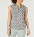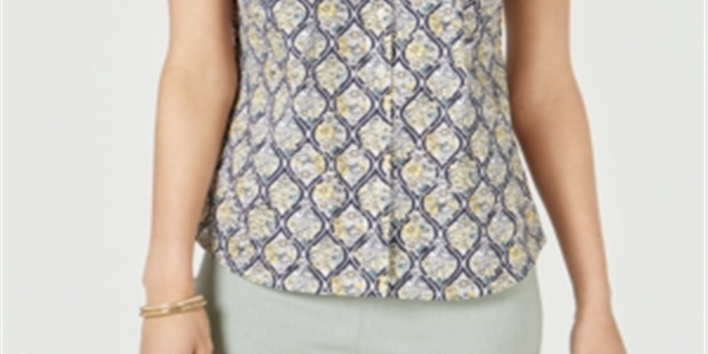 Charter Club Women's Printed Sleeveless Shirt Yellow/Dark Blue Size 4