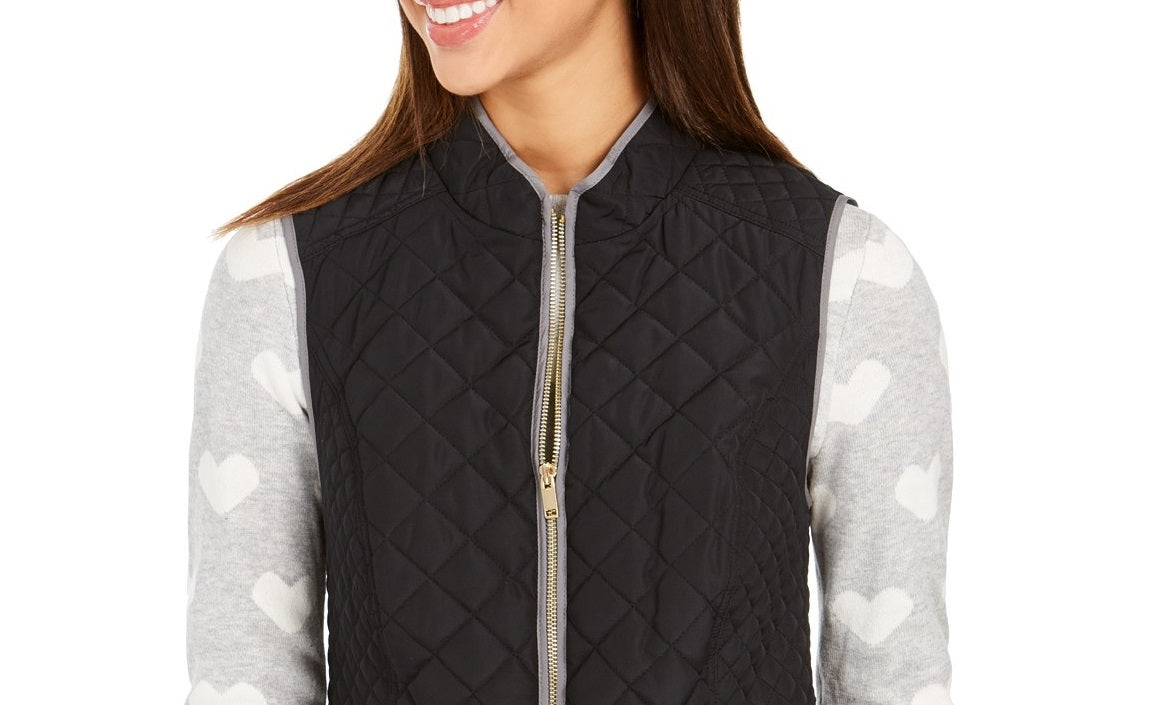 Charter Club Women's Quilted Stand-Collar Vest Black Size Medium