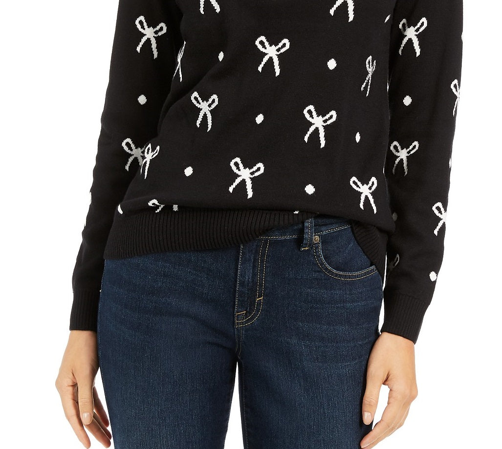 Charter Club Women's Reese Beaded-Bow Dotted Sweater Black Size Extra Large