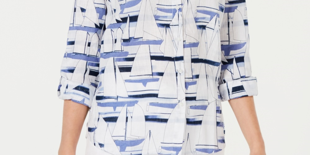 Charter Club Women's Sailboat Print Shirt White Size Medium