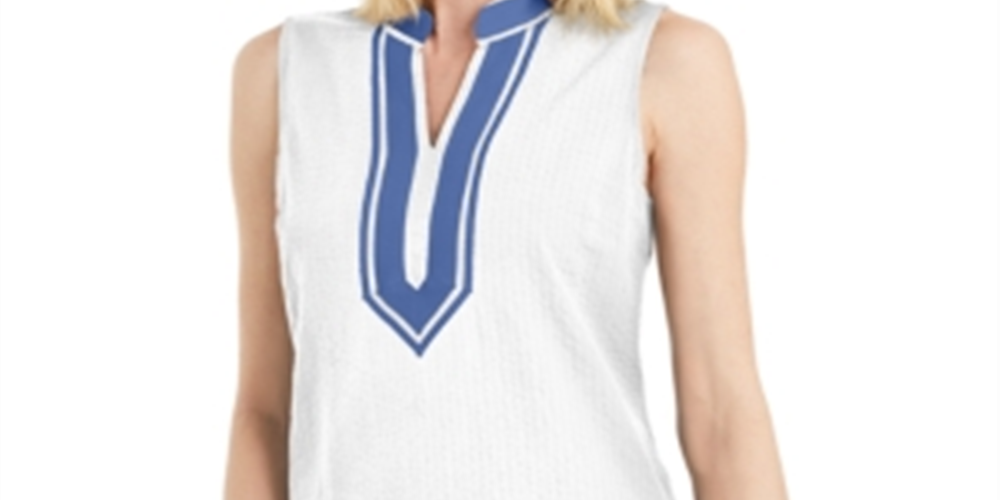 Charter Club Women's Seersucker Woven Tunic Top White Size Small