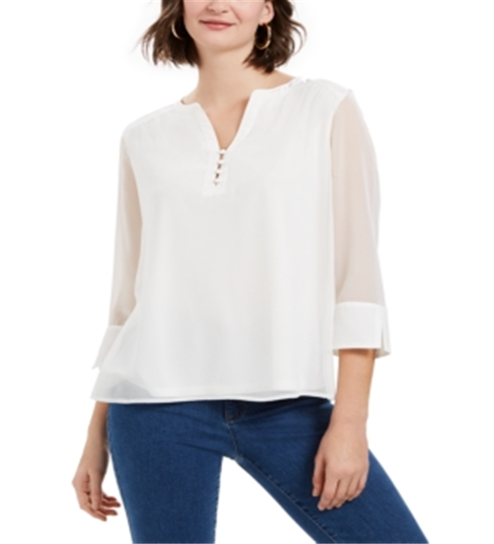 Charter Club Women's Sheer Sleeve Top White Size S