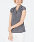Charter Club Women's Short Sleeve Printed Polo Top Blue Size Small
