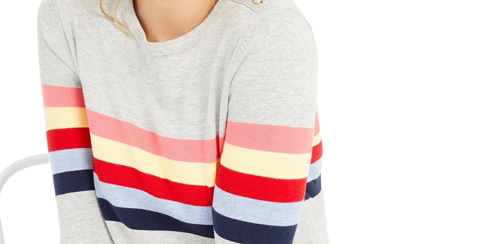 Charter Club Women's Shoulder Button Striped Sweater Gray Size X-Small