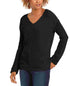 Charter Club Women's Solid Long Sleeve V Neck T-Shirt Top Black Size Petite Small