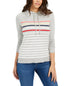 Charter Club Women's Striped Hoodie Sweater Gray Size PS