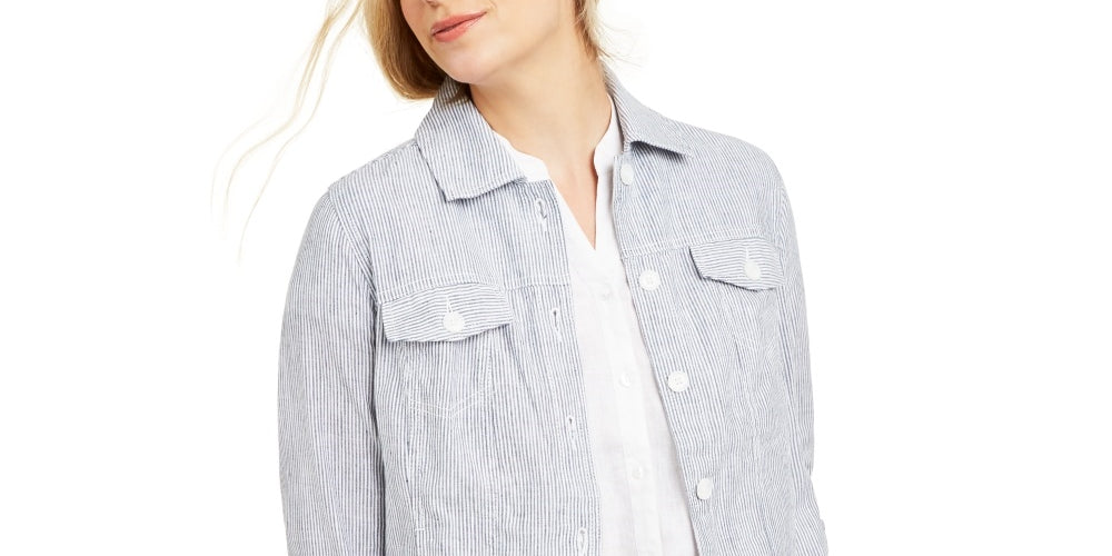 Charter Club Women's Striped Linen Jacket White Size Medium
