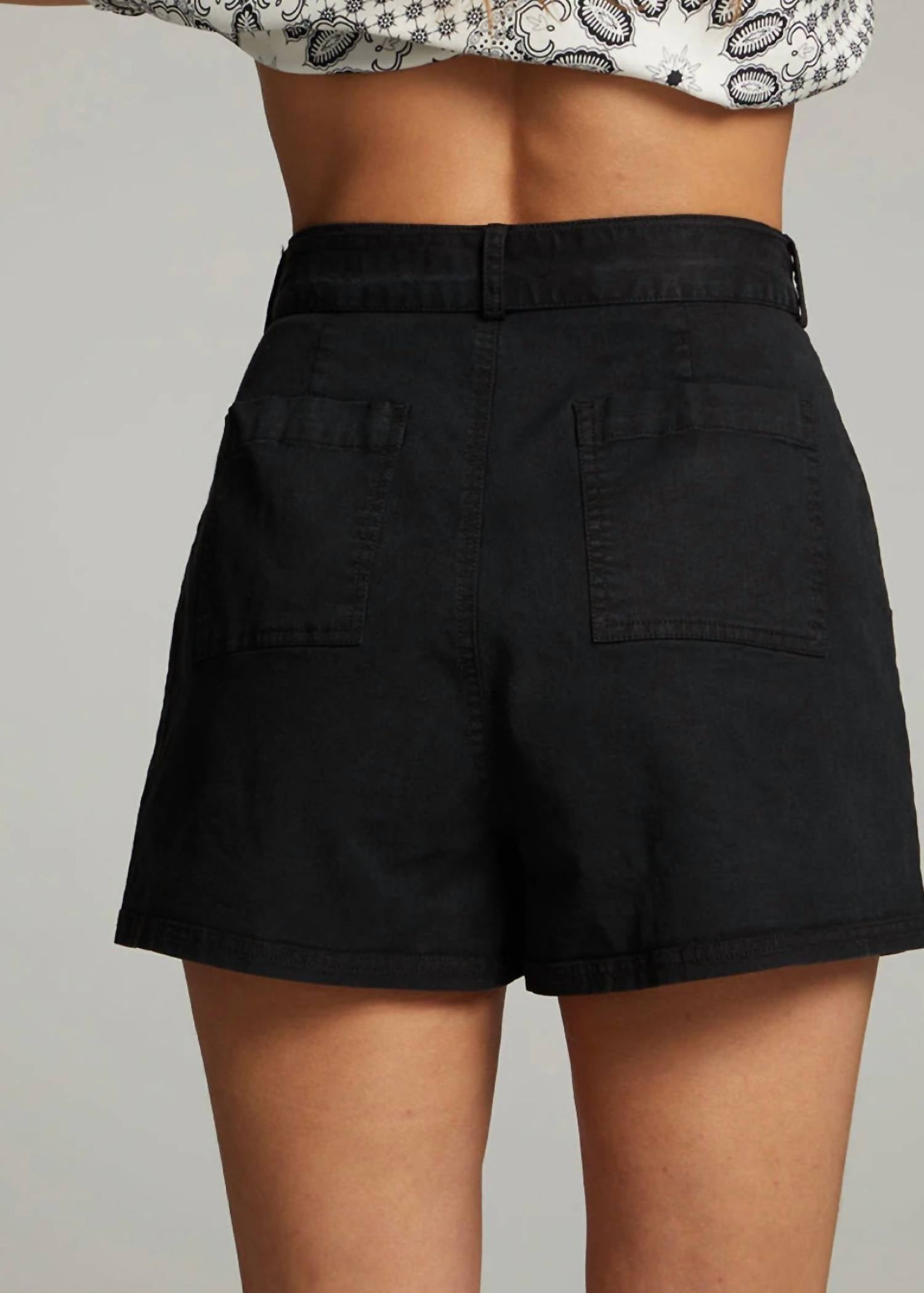 High-waist is here to stay and we especially love this style short. Elevate your spring wardrobe with the Karina High Waist Shorts by Chaser, available in a chic Licorice color. These women's shorts, perfect for a dinner party or casual outing, feature a solid pattern with practical pockets and a pull-on closure. Expertly crafted, they are made from a soft blend of 63% Tencel (Lyocell), 34% Cotton, and 3% Spandex. Imported and easy to care for, simply machine wash and enjoy wearing these 90s fashion-inspired shorts. Model is 5'9" and wearing a size small.