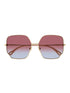Make a statement and shield your eyes in these fashionable, yet practical sunglasses. Grab these adorable shades for your next vacation and elevate your accessory game.Evolution of the Joni line in an oversized squared shape in gold metal featuring bio-based polyamide lenses. Single scallop detail at the bottom external corner of the front rim. Bio-based acetate temple tip with iconic teardrop cut out. Metal and Acetate. Measurements: 56mm lens width, 16mm bridge width, 145mm temple length. Made in Italy.