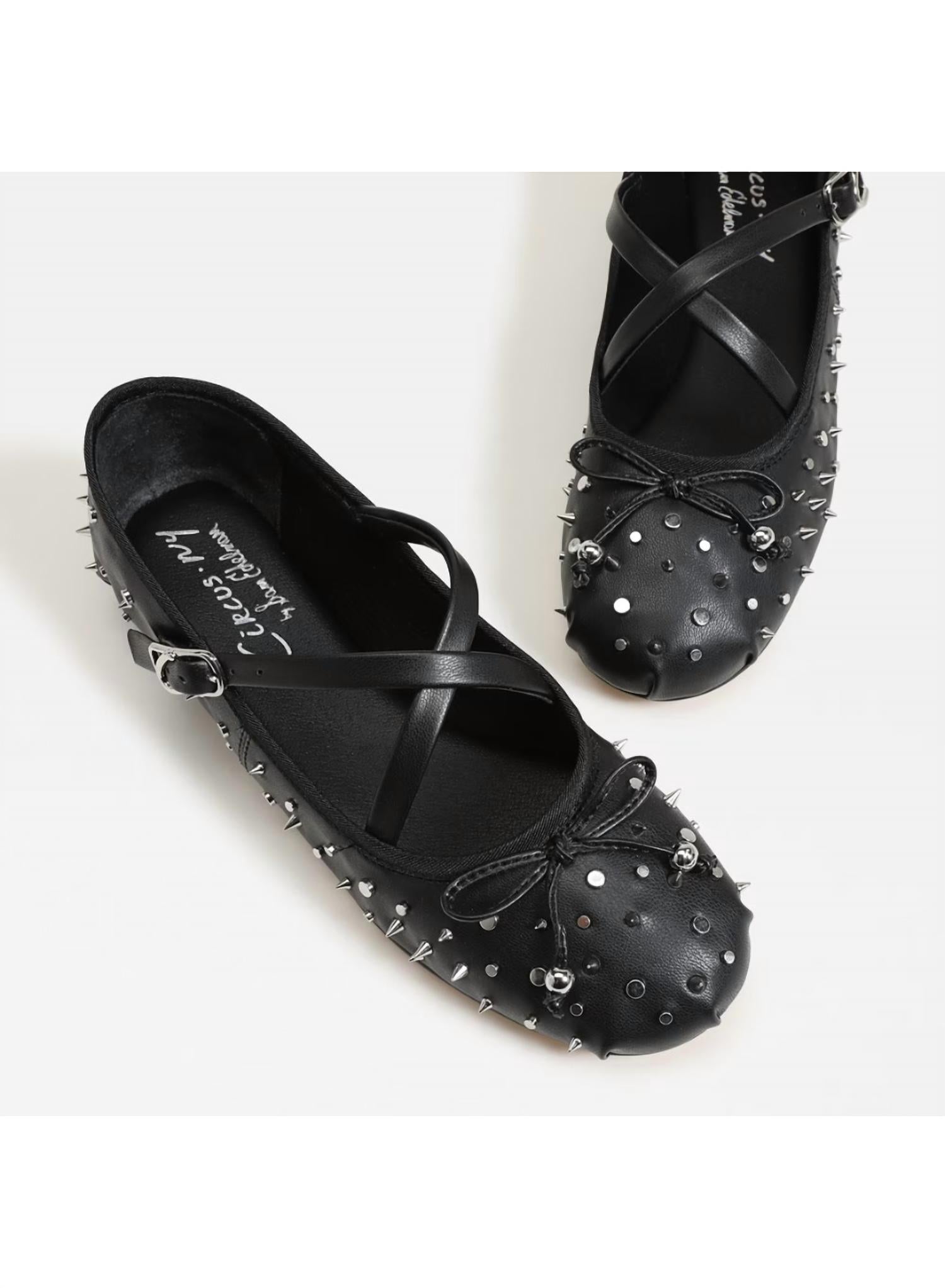 Designed to add a hint of edge to the classic round-toe ballet silhouette. Made with a leather outer material and synthetic sole, these flats feature a sleek slip-on closure for easy wear. With a modest heel height of just 0.375 inches, they offer subtle lift without sacrificing comfort. Originating from China, these flats are a chic addition to any ensemble.