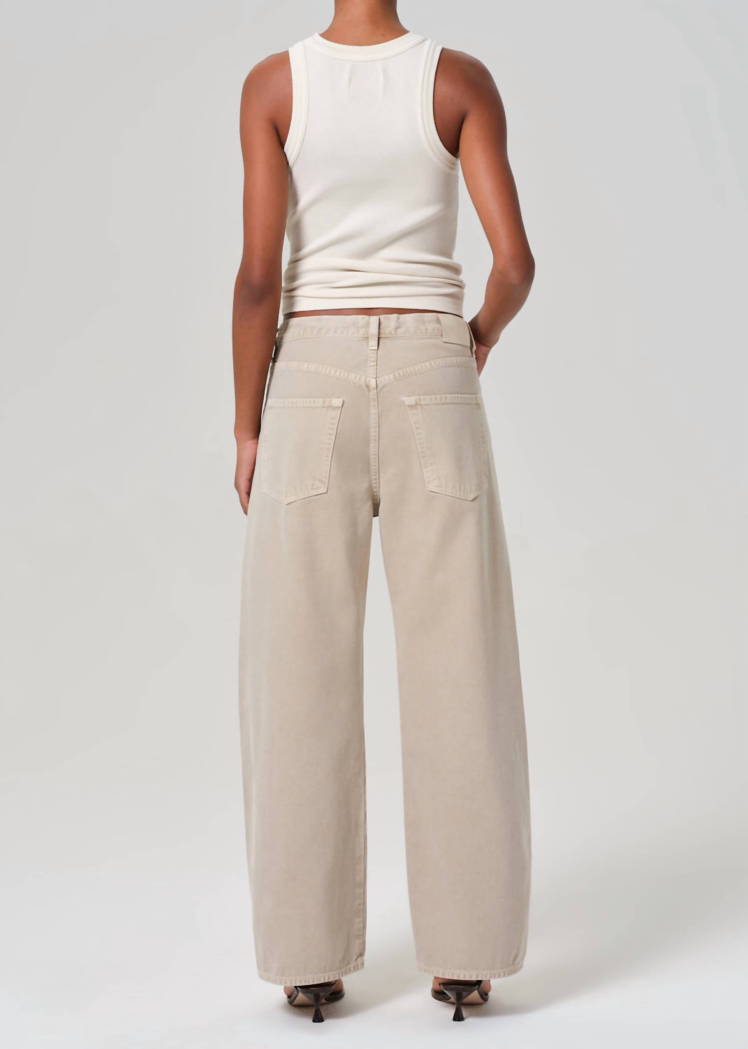 Discover the Citizens of Humanity Brynn Drawstring Trouser in Burnished Quart, designed for women who seek relaxed beach-ready style. Made from 100% regenerative cotton, this garment has a comfortable button fly with a 12.5" rise, 30.5" inseam, and a 21.75" leg opening that exudes effortless cool. It features a versatile design, perfect for pairing with tonal separates or a breezy tank. Care is a breeze: simply machine wash cold inside out with like colors and tumble dry low. With a model height of 5'10" wearing a size 27, these trousers exhibit sizing fit you can trust.