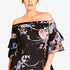 City Chic Women's Plus Floral Flourish Off-the-Shoulder Top Black Size 24W