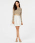 Top: hits at midriff|Skirt: short length, back zipper closure|Crew neckline; back hook and zipper closures with keyhole cutout|Two-piece design: long-sleeve lace top with glitter detailing and molded cups, tiered contrast skirt|IMPORTANT NOTE: This item arrives with a return tag attached and instructions for removal. Once the tag is removed from the dress, this item cannot be returned.