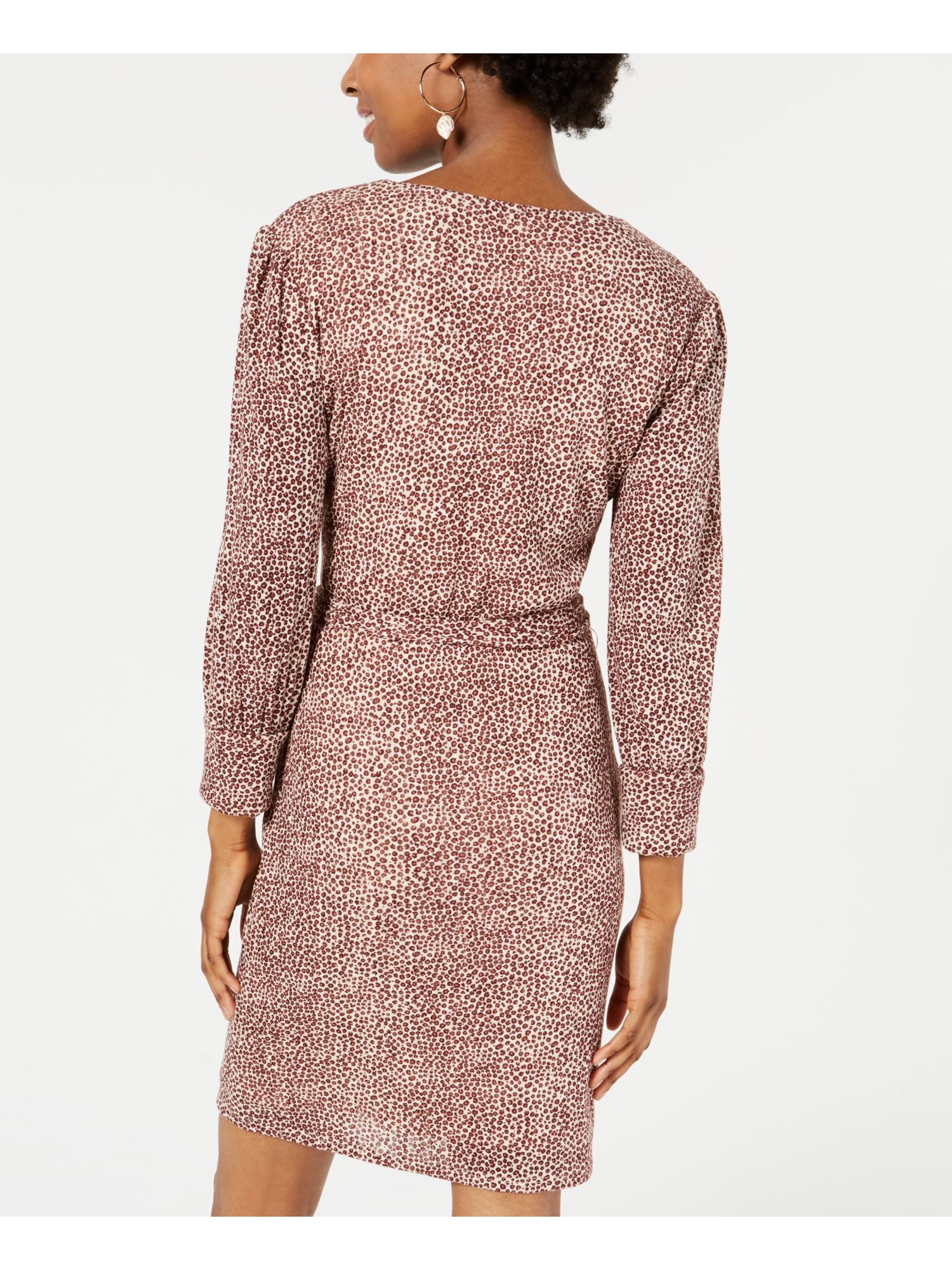 City Studios Women's Belted Animal Print Long Sleeve V Neck Above the Knee Sheath Dress Brown Size X-Small